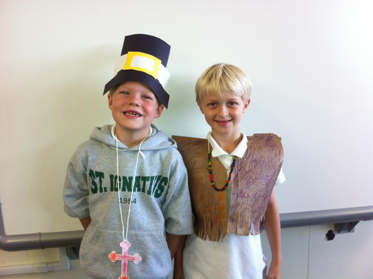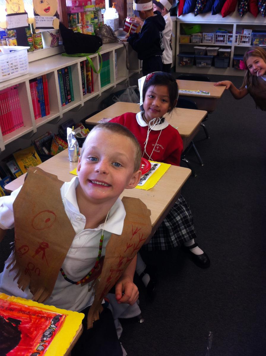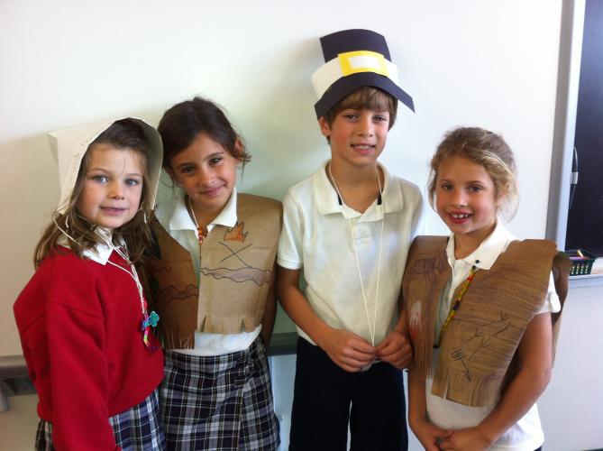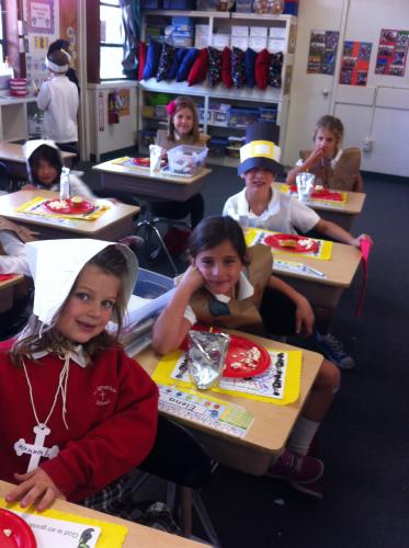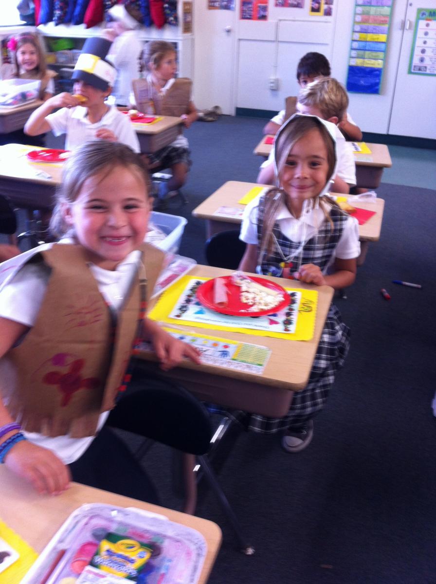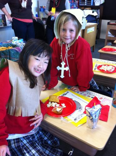 Pilgrims and Native Americans Feast Together