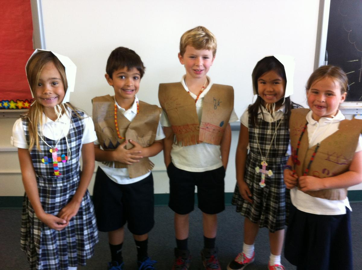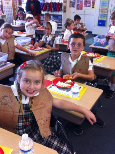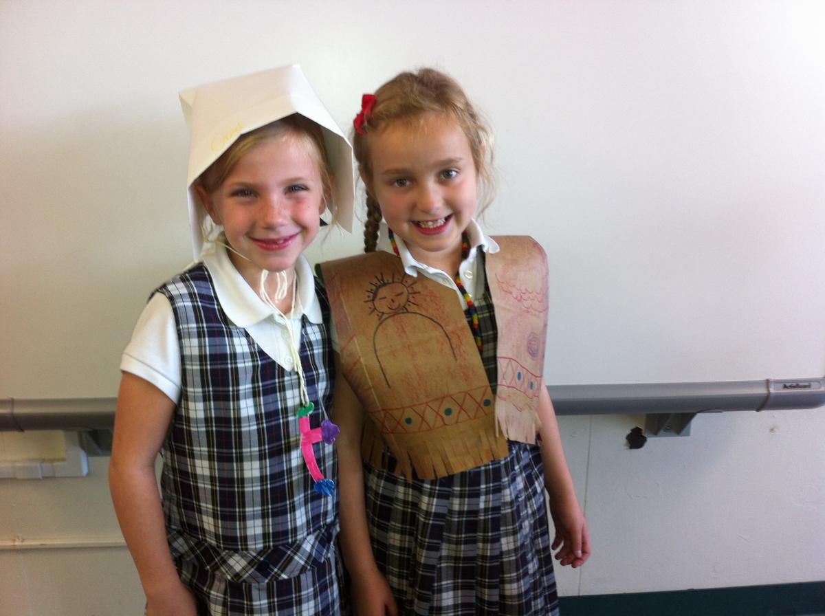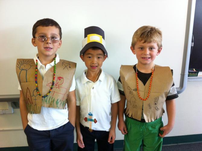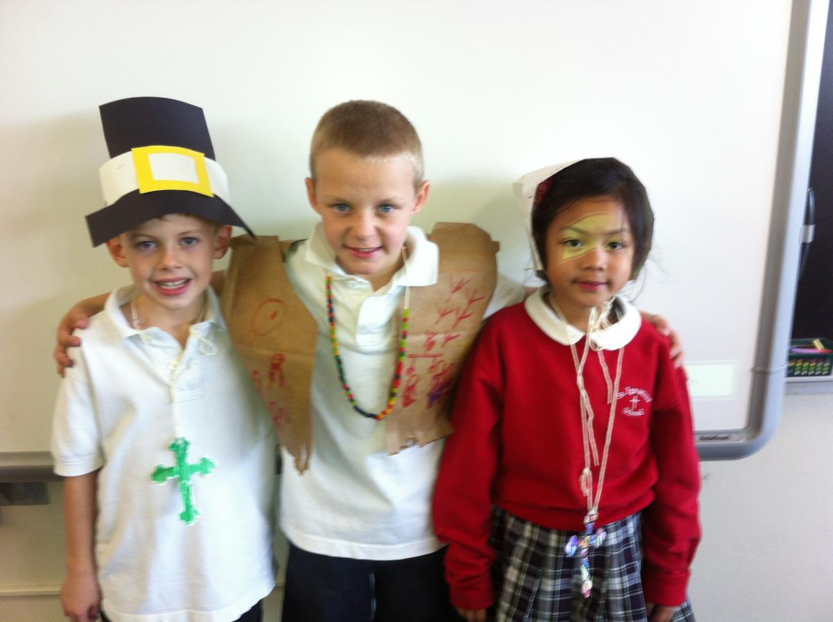 Pilgrims and Native Americans Feast Together